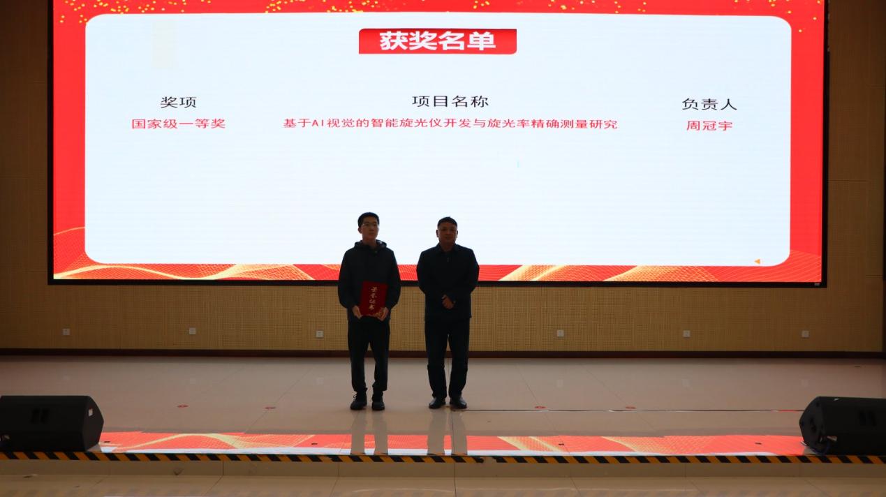 现场,领导嘉宾为国创赛、“挑战杯”等赛事获奖团队及个人颁奖,并邀请2025年国创赛国铜项目《一代楷膜——新一代显示屏半导体薄膜领军者》团队进行路演展示。