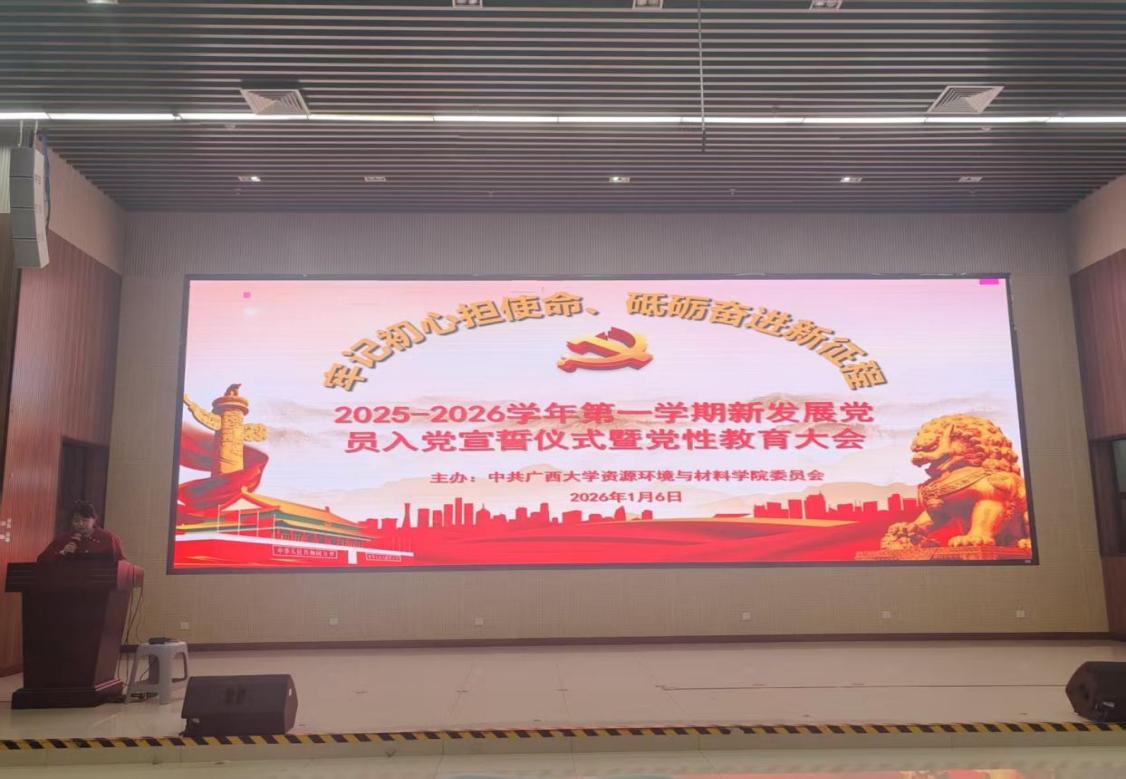 1月6日,av影片直播2025-2026学年秋季学期新发展党员入党宣誓仪式暨党性教育大会顺利举行。学院党委书记沈大强,党委副书记、纪委副书记梁宇彬出席大会,老党员代表及全体新发展党员共同参加活动。