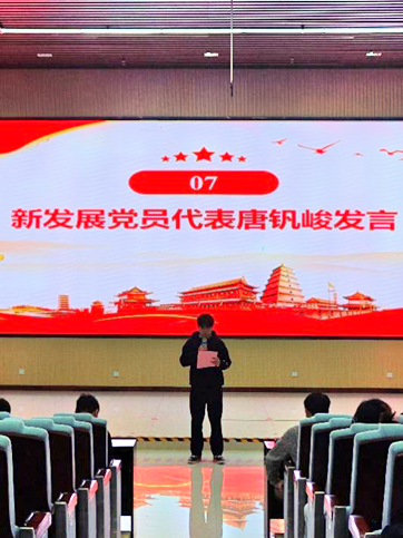 新发展党员代表唐钒峻结合在先行连的培养经历,分享了个人思想与实践成长的体会,表达了坚定理想信念、积极向党组织靠拢、争取早日成为一名合格共产党员的决心。